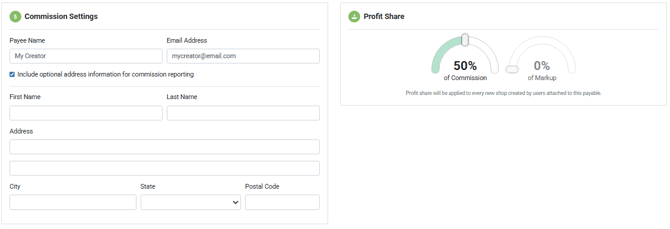 Please note: Changing the percentage later will not affect existing shops — only future ones. However, you can edit the percentage of commission shared with this payable from within each individual shops if you'd like to make changes to existing shops.
